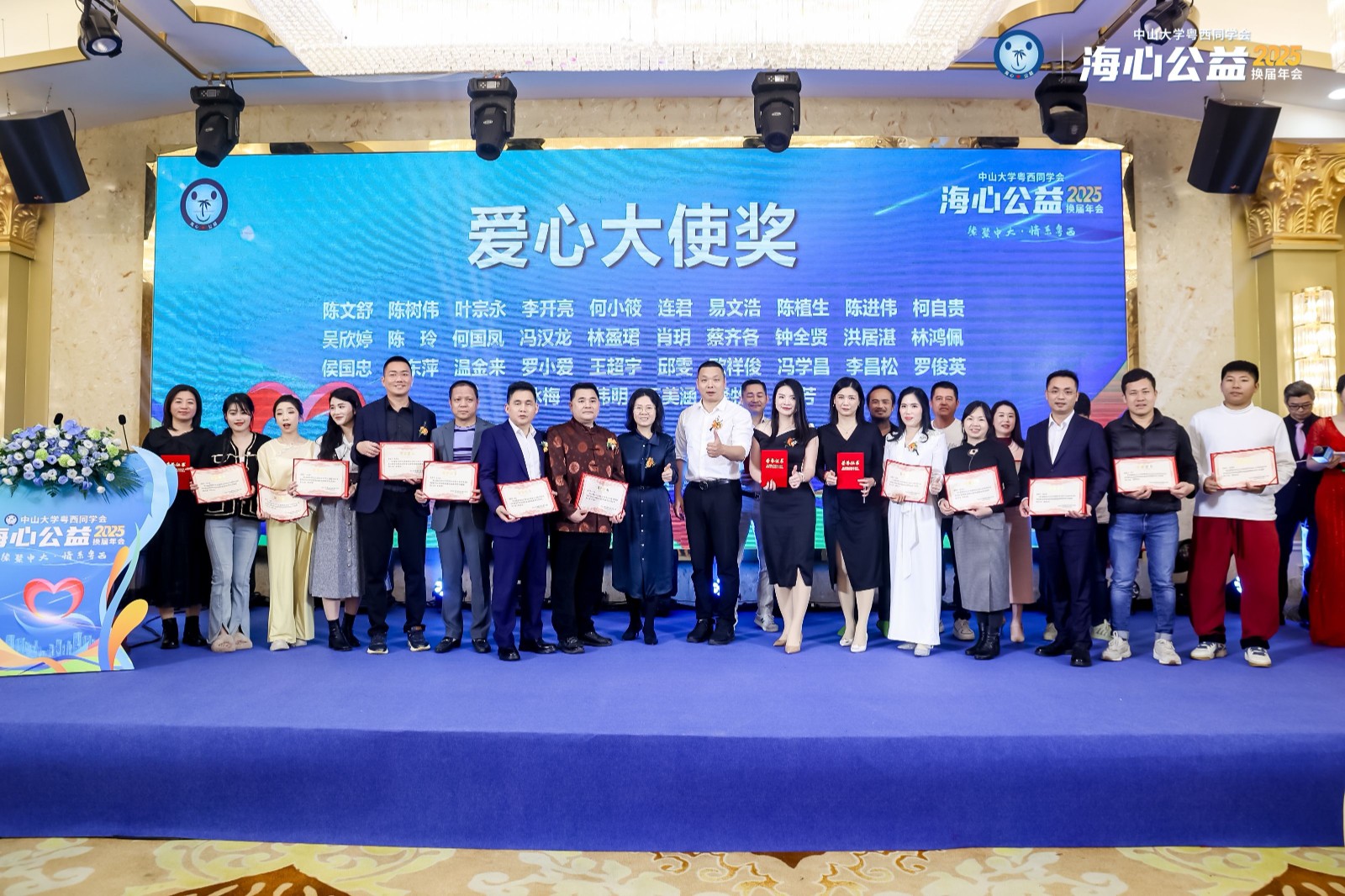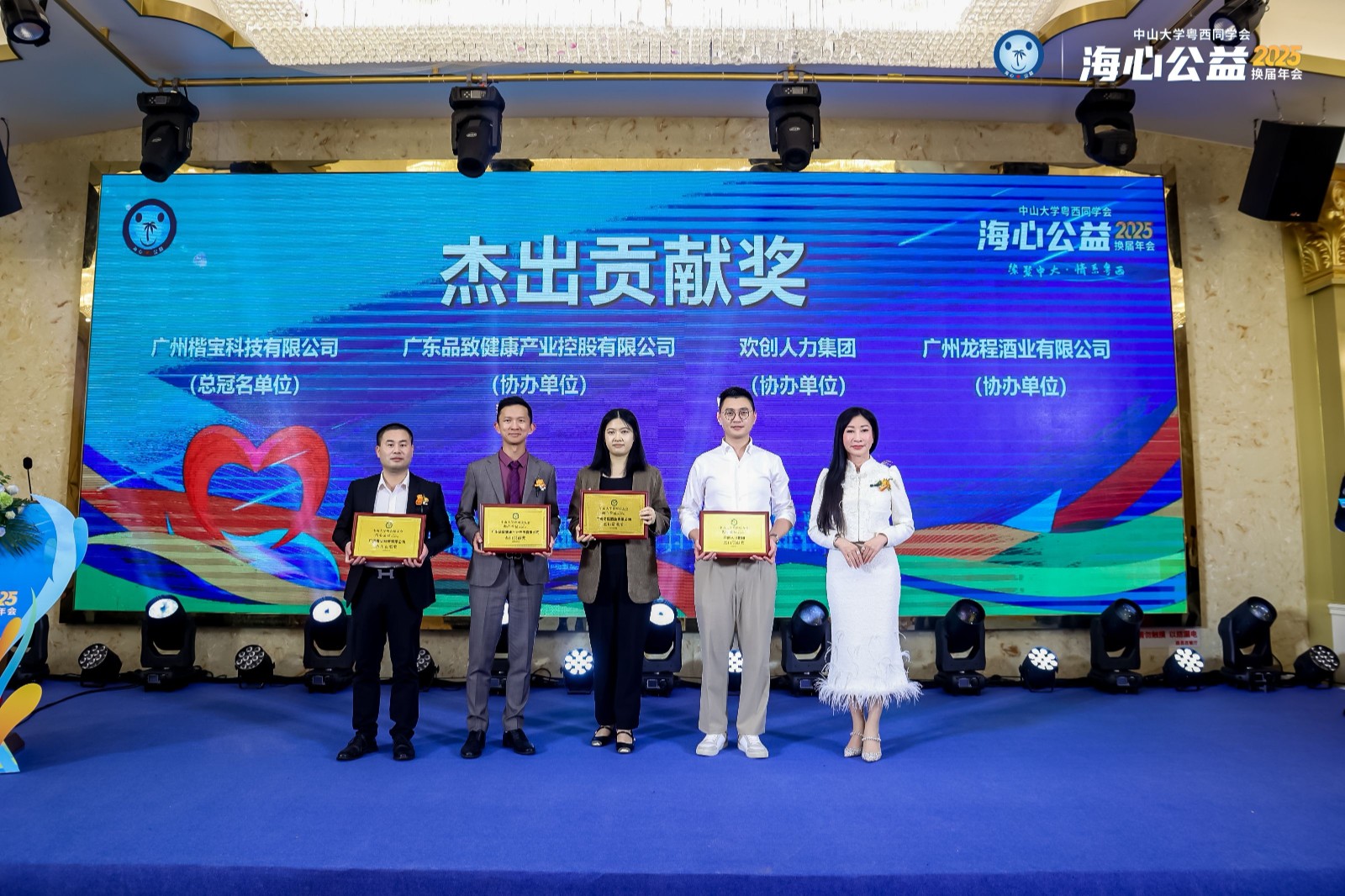 3月22日,广州羊城之夜,中山大学粤西校友会海心公益2025换届主题晚会璀璨启幕,数百名校友、企业家及爱心人士共聚一堂,见证公益薪火传承。欢创集团凭借多年来对公益事业的贡献,荣获“杰出贡献奖”;集团党支部书记、总裁陈文舒女士荣获“爱心大使奖”,并正式当选海心公益新任会长,以崭新身份续写公益事业的责任与担当。