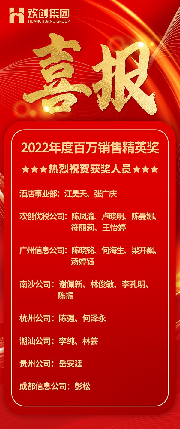 根据欢创集团公告的2022年度评优方案,经过各单位的推荐及集团的评审,2022年度欢创集团员工个人类奖项评优结果出来啦!现将获奖情况公告如下: