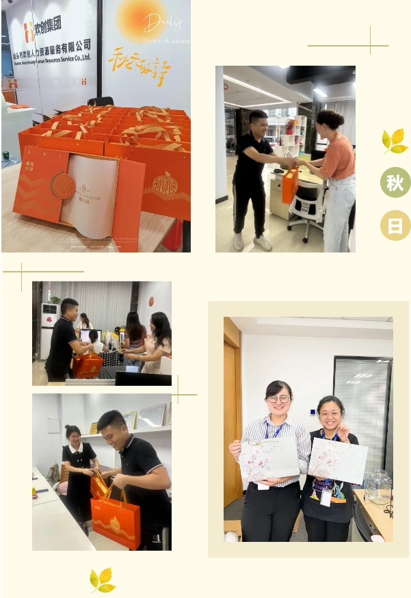 情暖中秋,爱在欢创。为表达对小伙伴们的关怀和感恩之情,感谢大家的辛勤付出,欢创集团为总部及各分子公司的小伙伴们都准备了精美的中秋礼盒,人事行政部的小姐姐们在幕后辛勤准备,精心挑选月饼礼盒,为节日的团聚锦上添花。同时,公司领导也为各位小伙伴送去的浓浓关爱和满满的祝福。