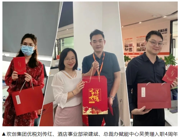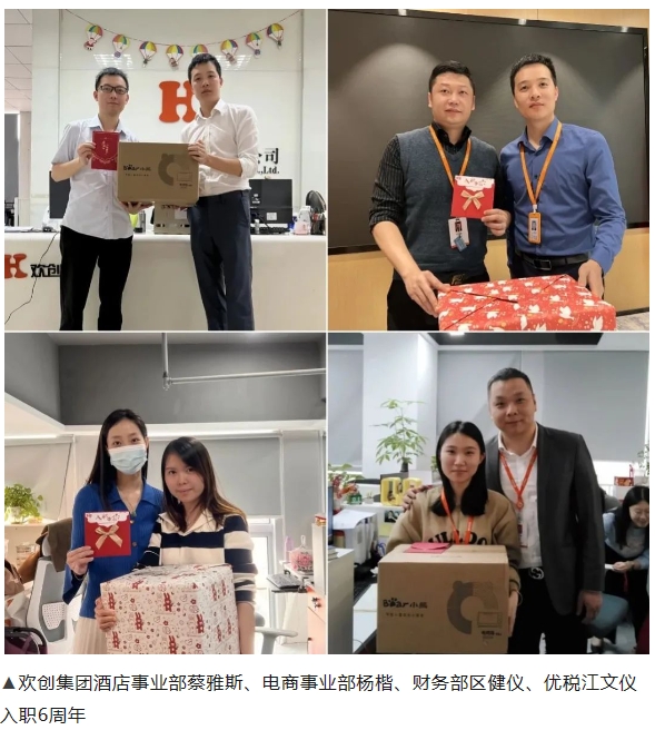 员工入职纪念日,既是员工周年日,也是公司的纪念日,需要浓浓的仪式感,欢创集团会按照每位同事的入职日对员工进行入职纪念日关怀活动,为满周年的员工送上真诚的祝福及定制的纪念品,以表示对员工伙伴的慰问与感谢。欢创集团感恩每一位伙伴的携手同行!欢创集团因为有你们,更加欢乐,更加精彩!